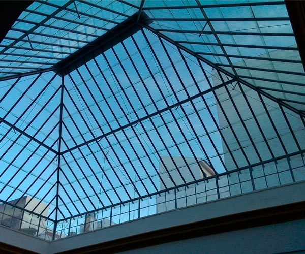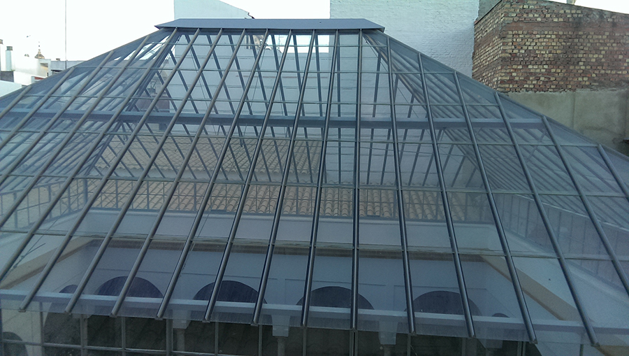 El alcance de la intervención también incluyó la mejora de la estanqueidad, mediante la reconstrucción de las cubiertas y, especialmente de la montera acristalada del patio central de dimensiones 10x7m.