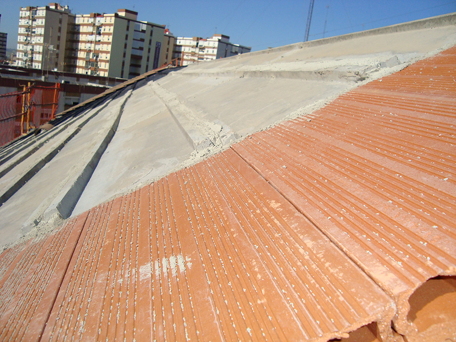 La intervención consistió en rehacer la cubierta del edificio, un tratamiento superficial en la envolvente exterior y del patio, así como la sustitución del saneamiento de fibrocemento por uno nuevo, asegurando todas las acometidas de aseos y cocinas.